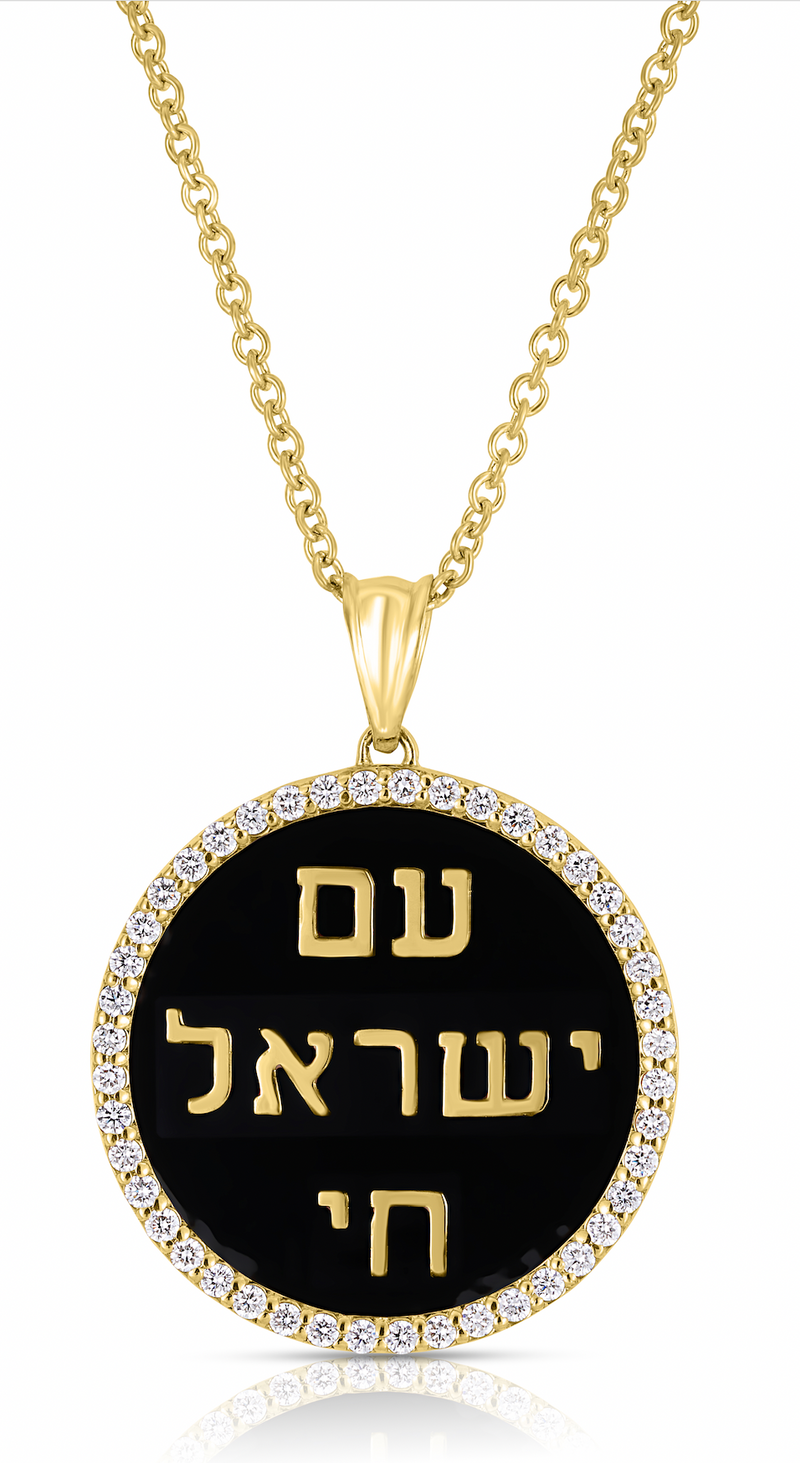 Yellow Gold Hebrew Letter Pendant with Diamonds + Black Enamel