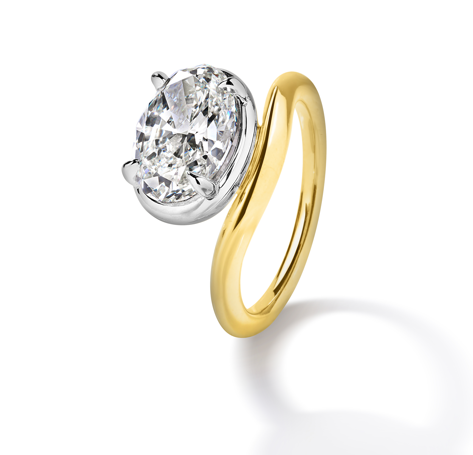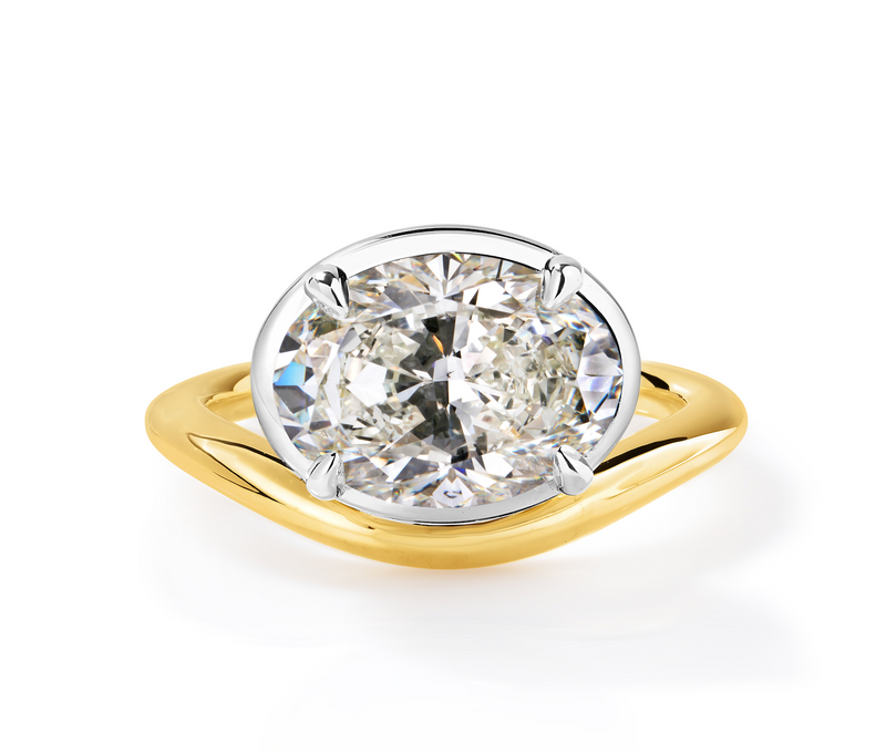 Oval Custom Ring Set East to West 2 Tone Engagement Ring