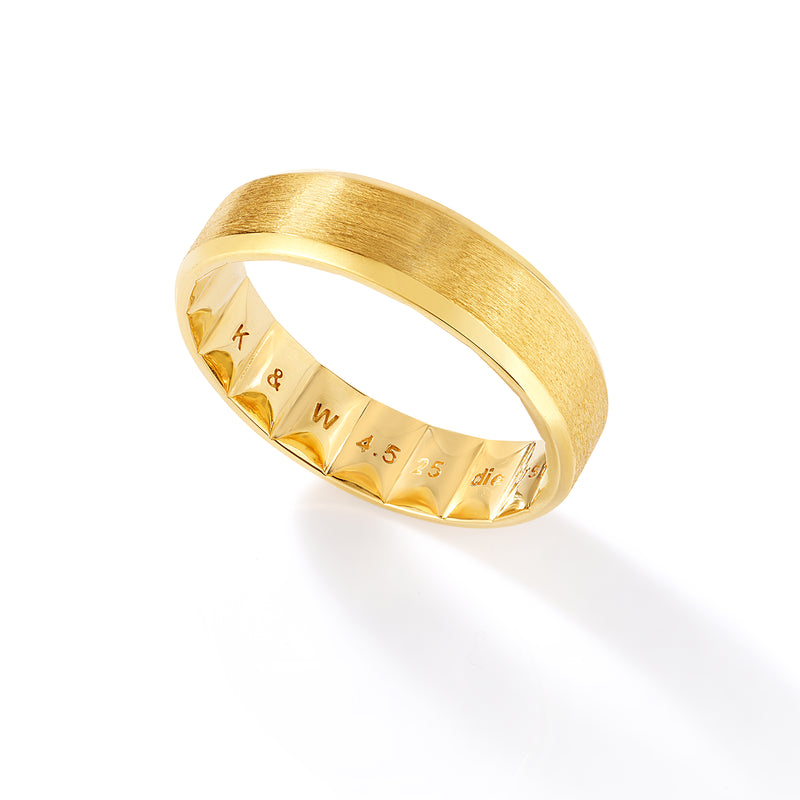 Men's Gold Wedding Ring Matte Finish with Polished Edges with Pattern on Inside with Built in Engraving